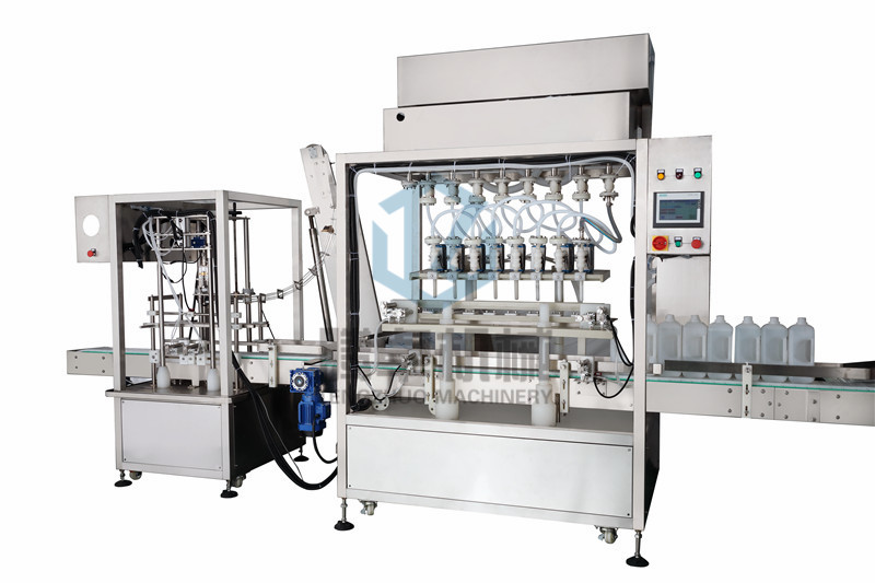 此生產(chǎn)線還適合于清潔劑,潔廁劑等酸堿性產(chǎn)品的包裝